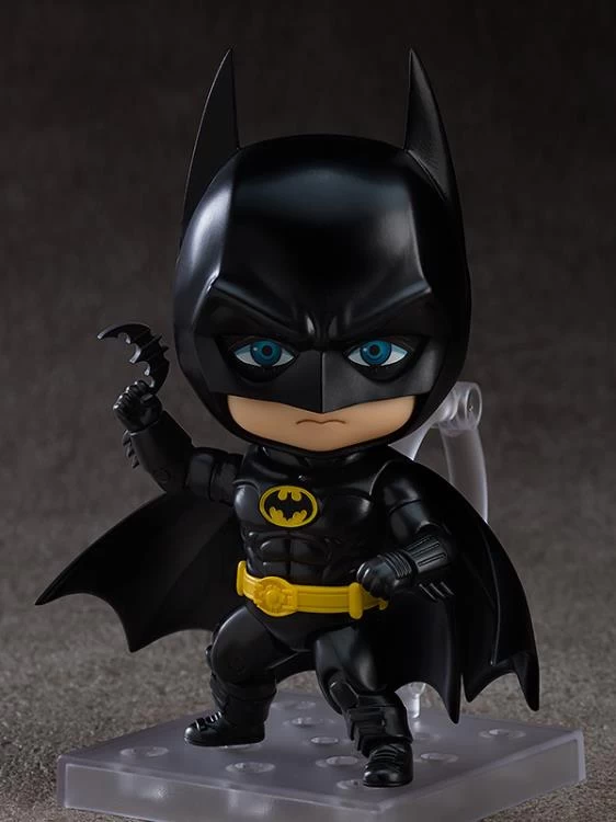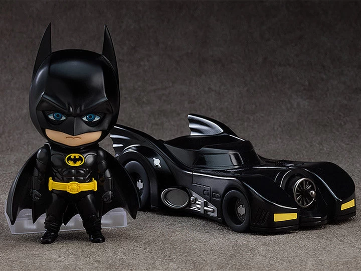 From the 1989 film Batman comes a Nendoroid of the main hero himself! The Nendoroid comes with various optional parts including a Batarang, a grappling hook, and the Batmobile.
