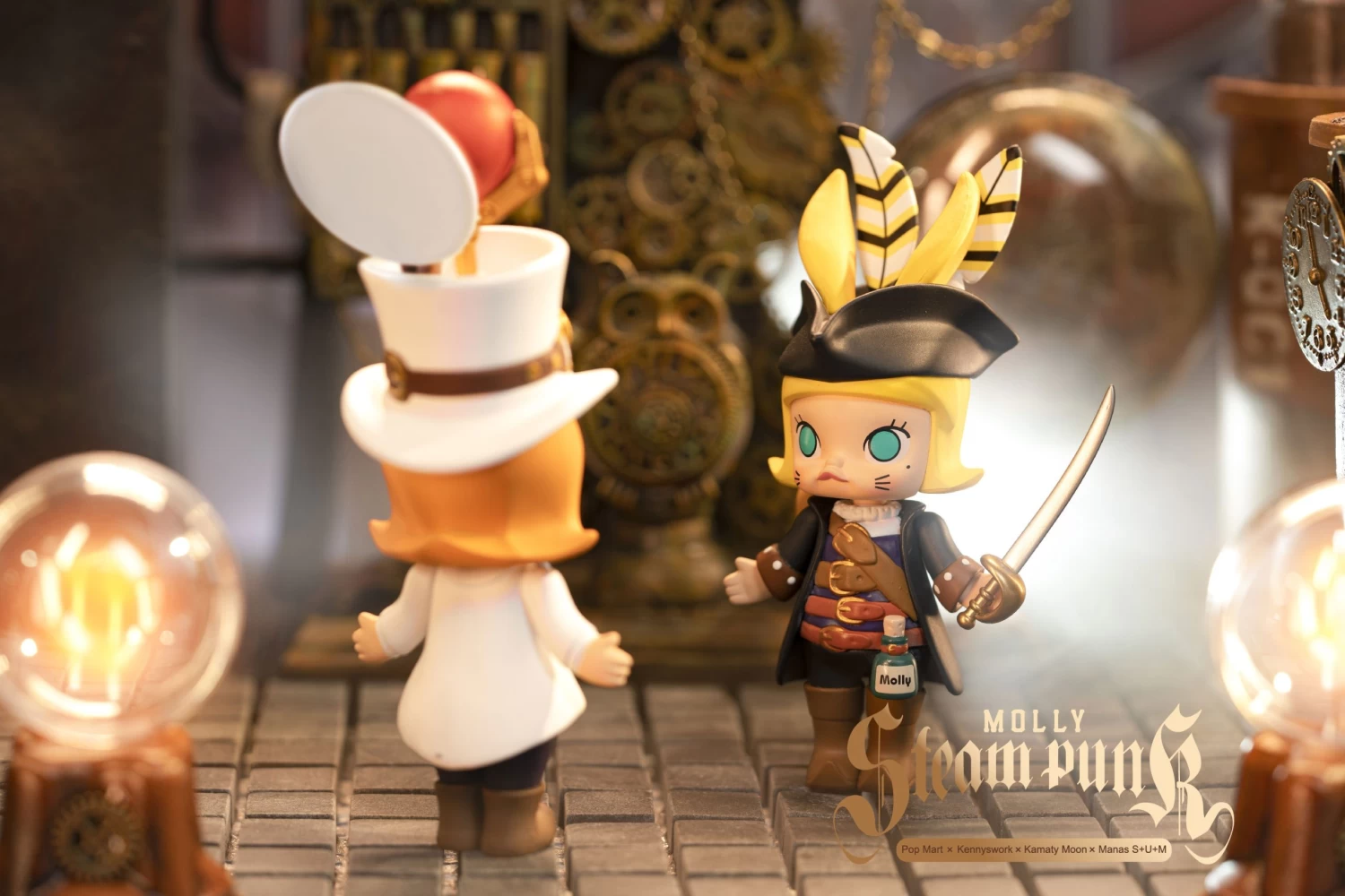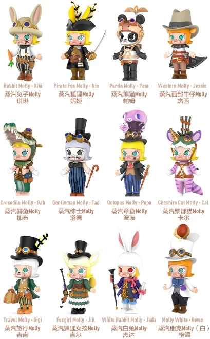 Popmart’s Molly character, designed by Kenny Wong, now enters into a dream collaboration with Japanese modeling artist Koji Kamata to create the Molly Steampunk series! Molly launches herself into the retro-futuristic world of steampunk with a lineup of 12 different figures, plus two secret figures; each one is intensely detailed and very cute. They’re randomly packed in boxes of 12 — order yours today!